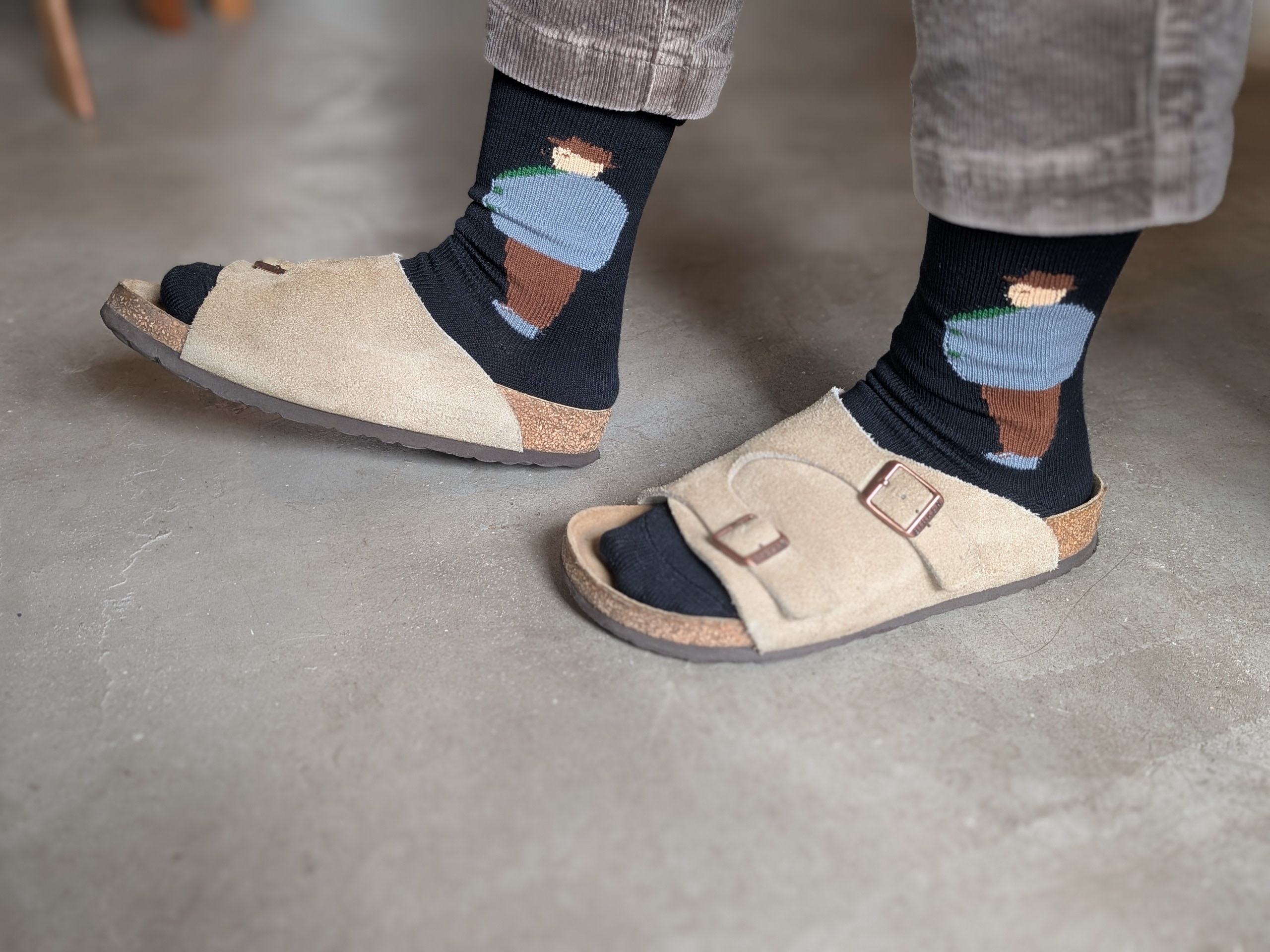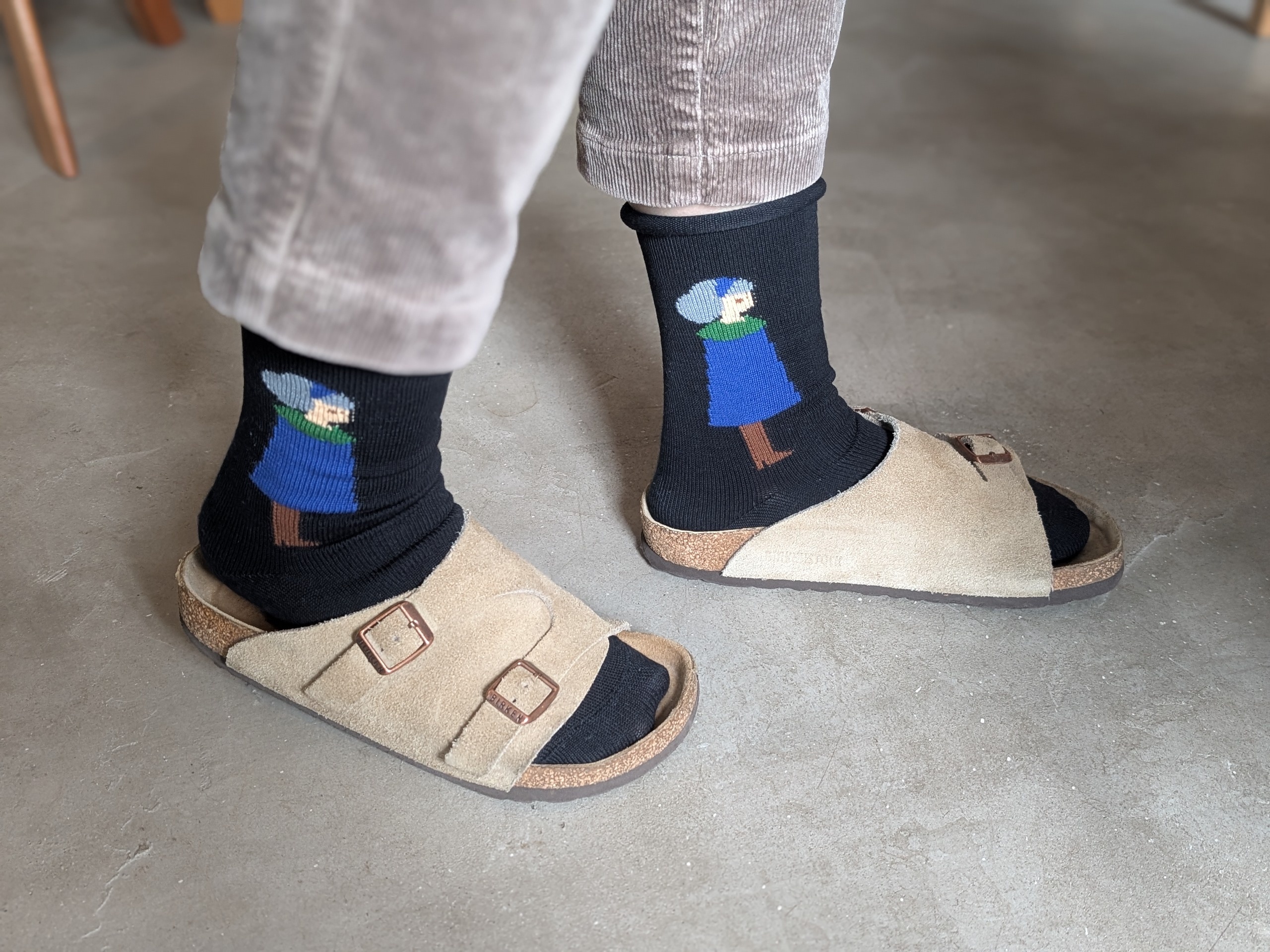 左右からの見え方が異なる靴下。足元からチラッと覗くだけで存在感を放つデザインで、毎日のコーデが楽しくなる1足です。