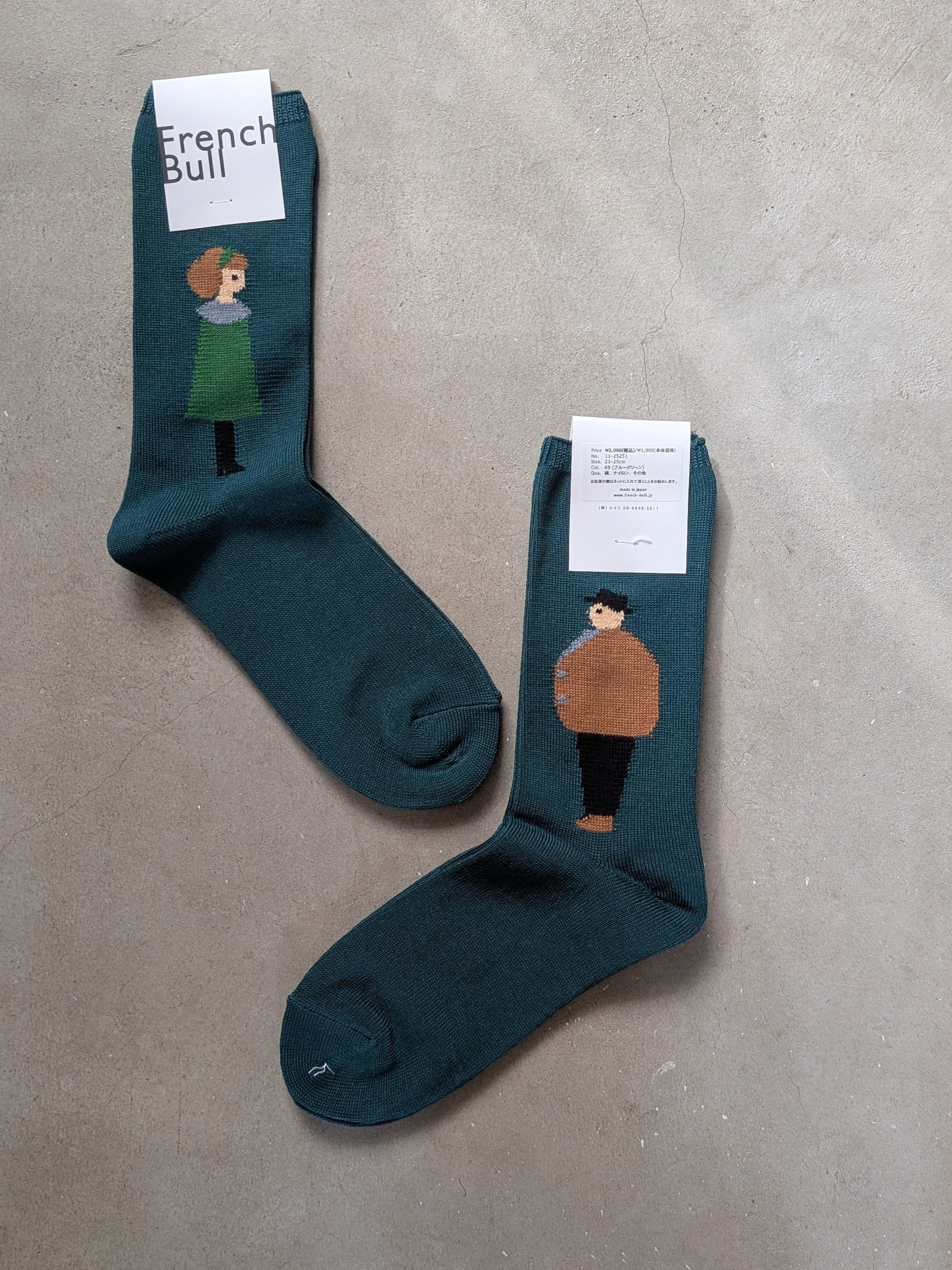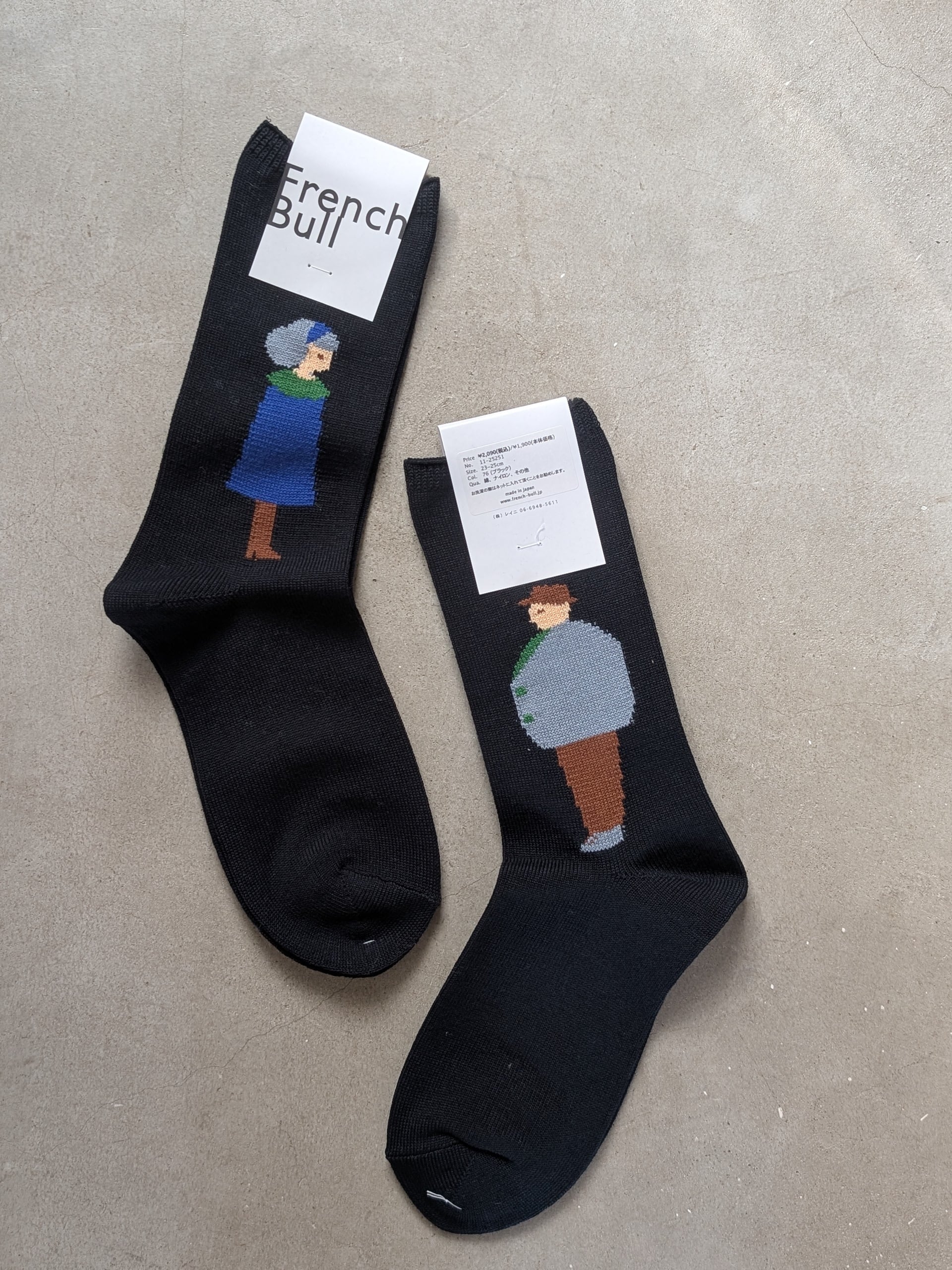 左右で柄がカップルがモチーフのキュートで楽しい靴下です。