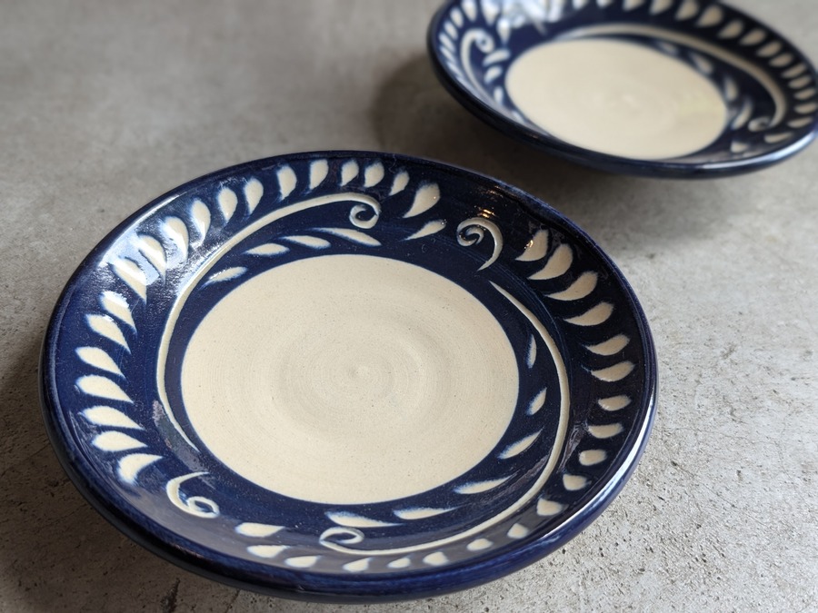 與那嶺大輔さんのやちむん。2005年から陶工として働き、2019年西原町にやちむん工房 與那嶺を構えました。得意な技法は線彫り。