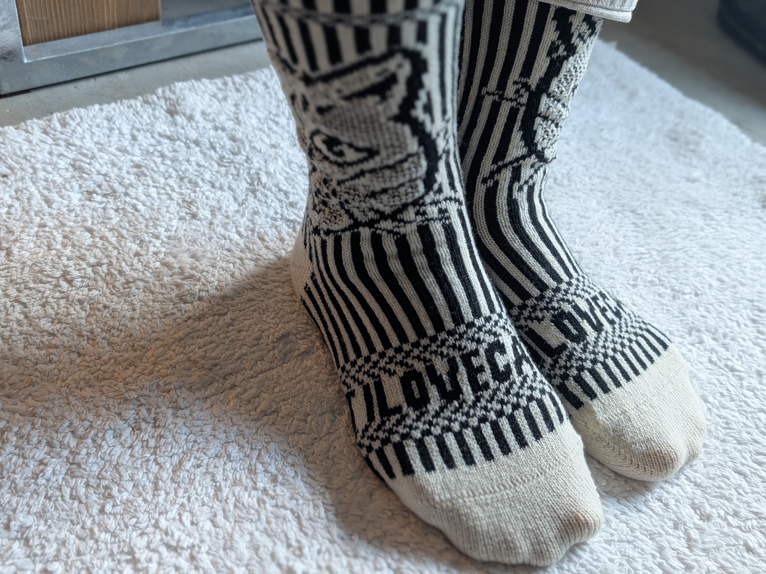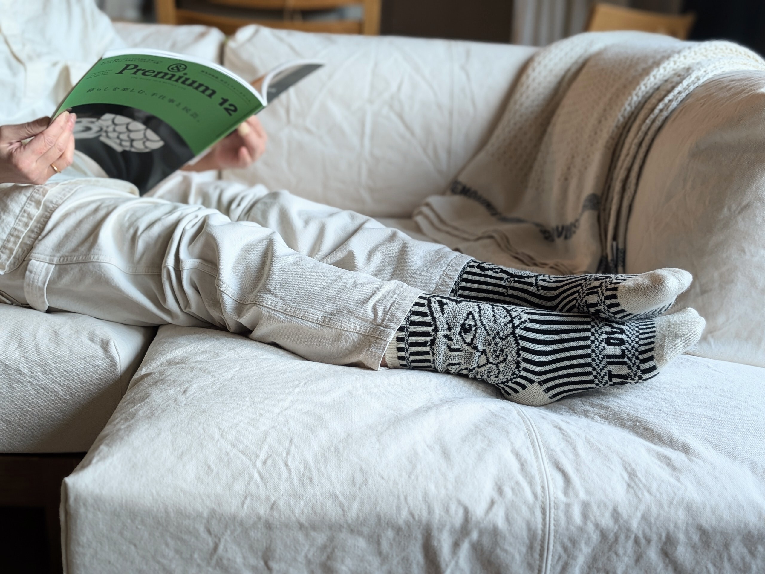柔らかな防縮ウールで編みたてています。厚手の暖かい靴下なので、冬の贈り物にもおすすめ。