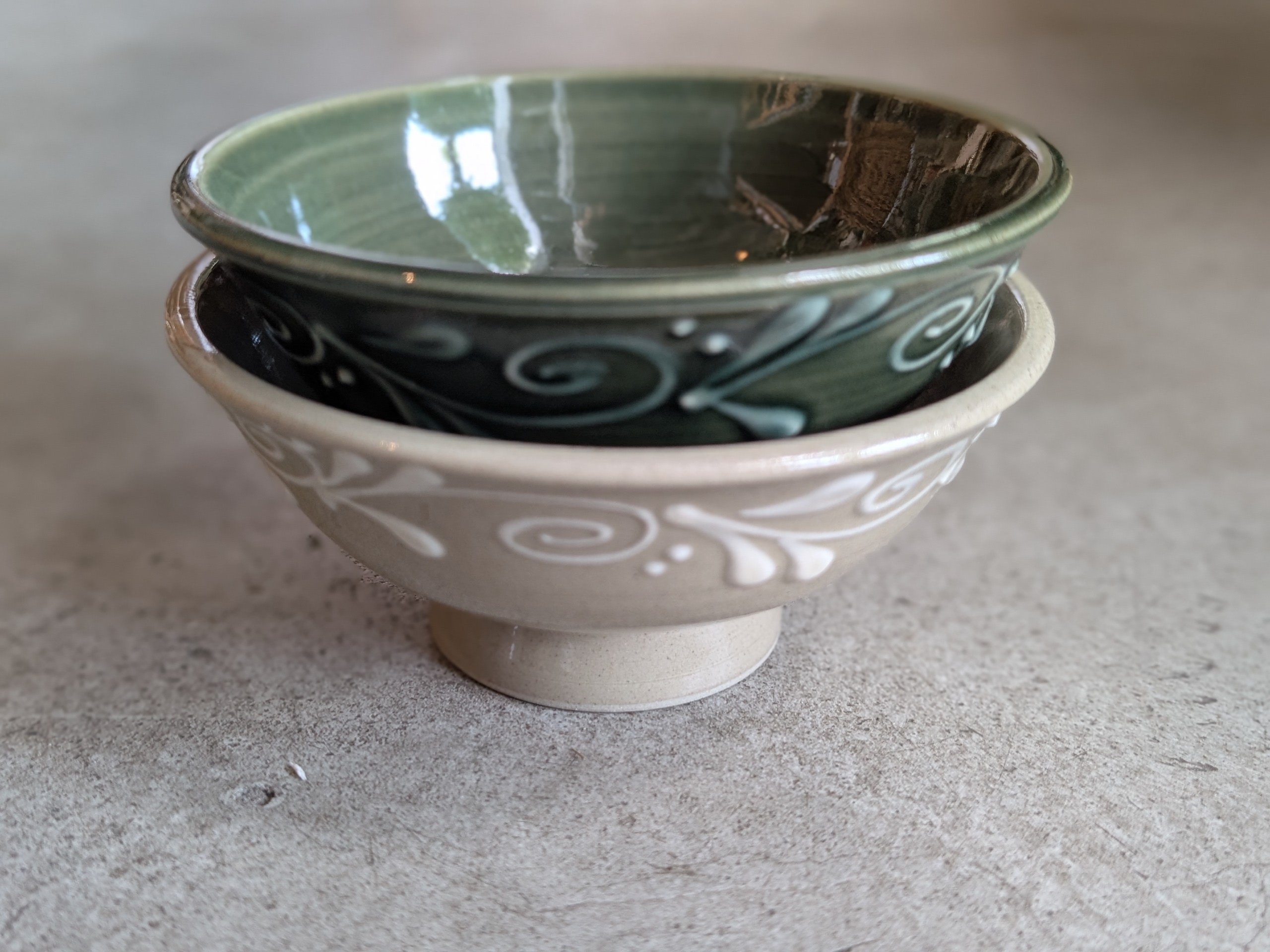 やちむん 飯マカイ(イッチン/白・緑) | 育陶園