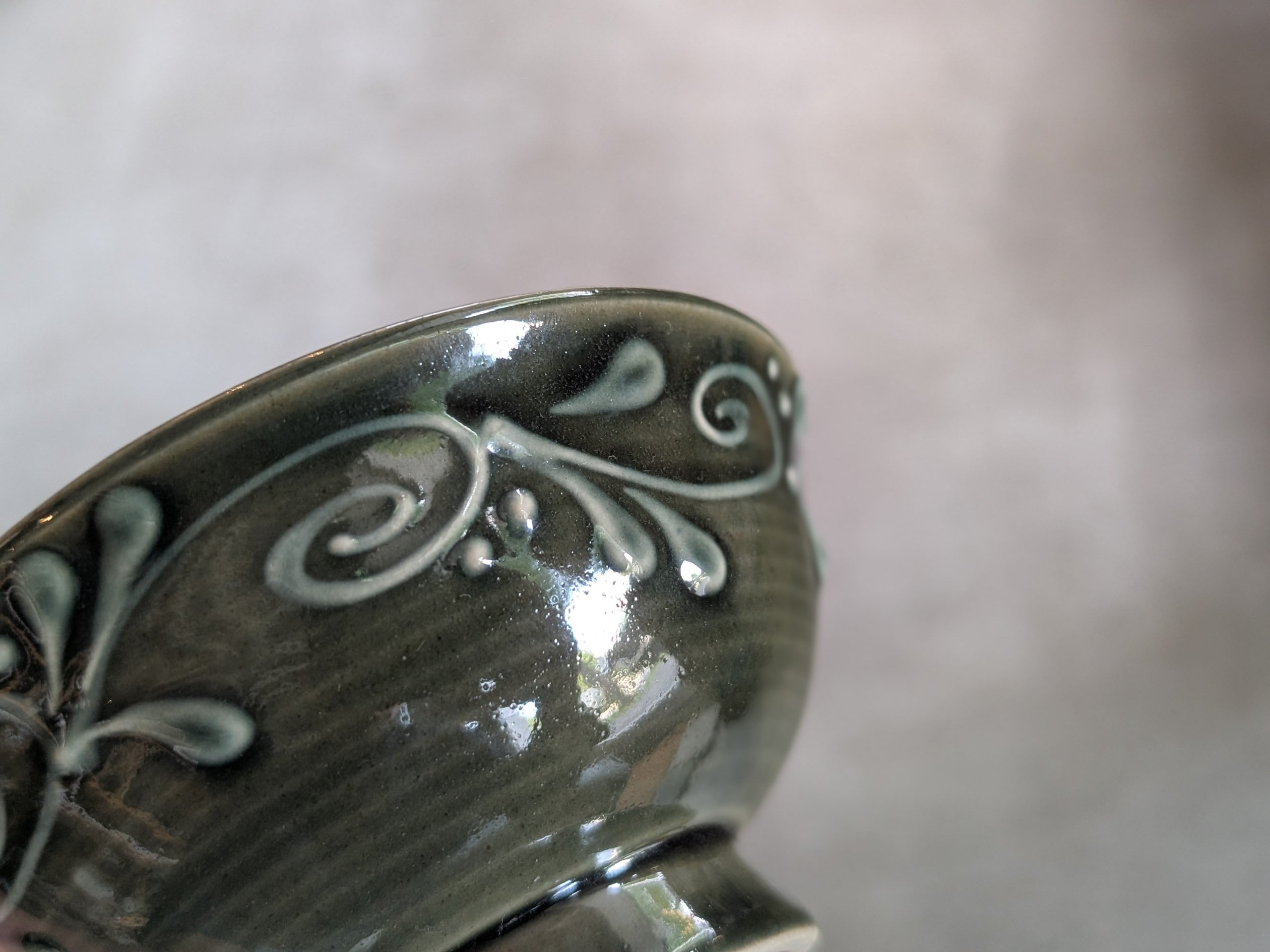 外側は立体的に盛り上がった「イッチン」柄が描かれています。立体的な模様がとても華やか。