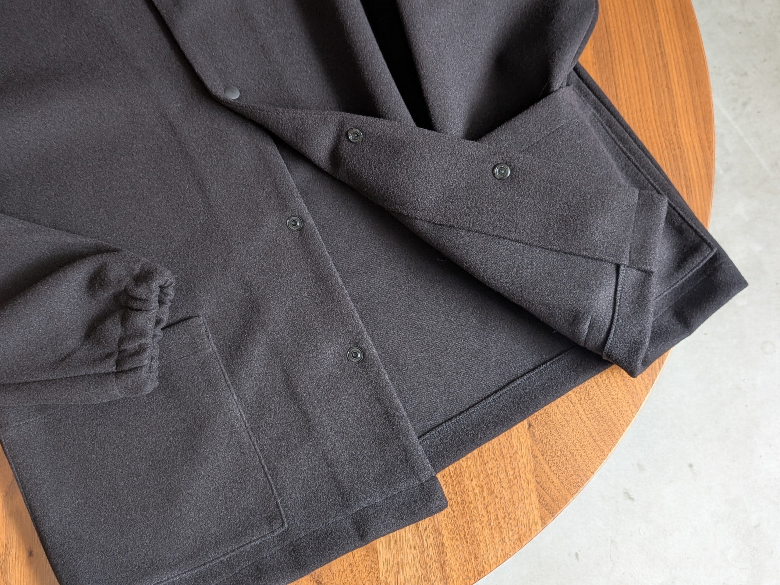 コートなどに使われるメルトンのようなウォーム感のあるニット素材です。