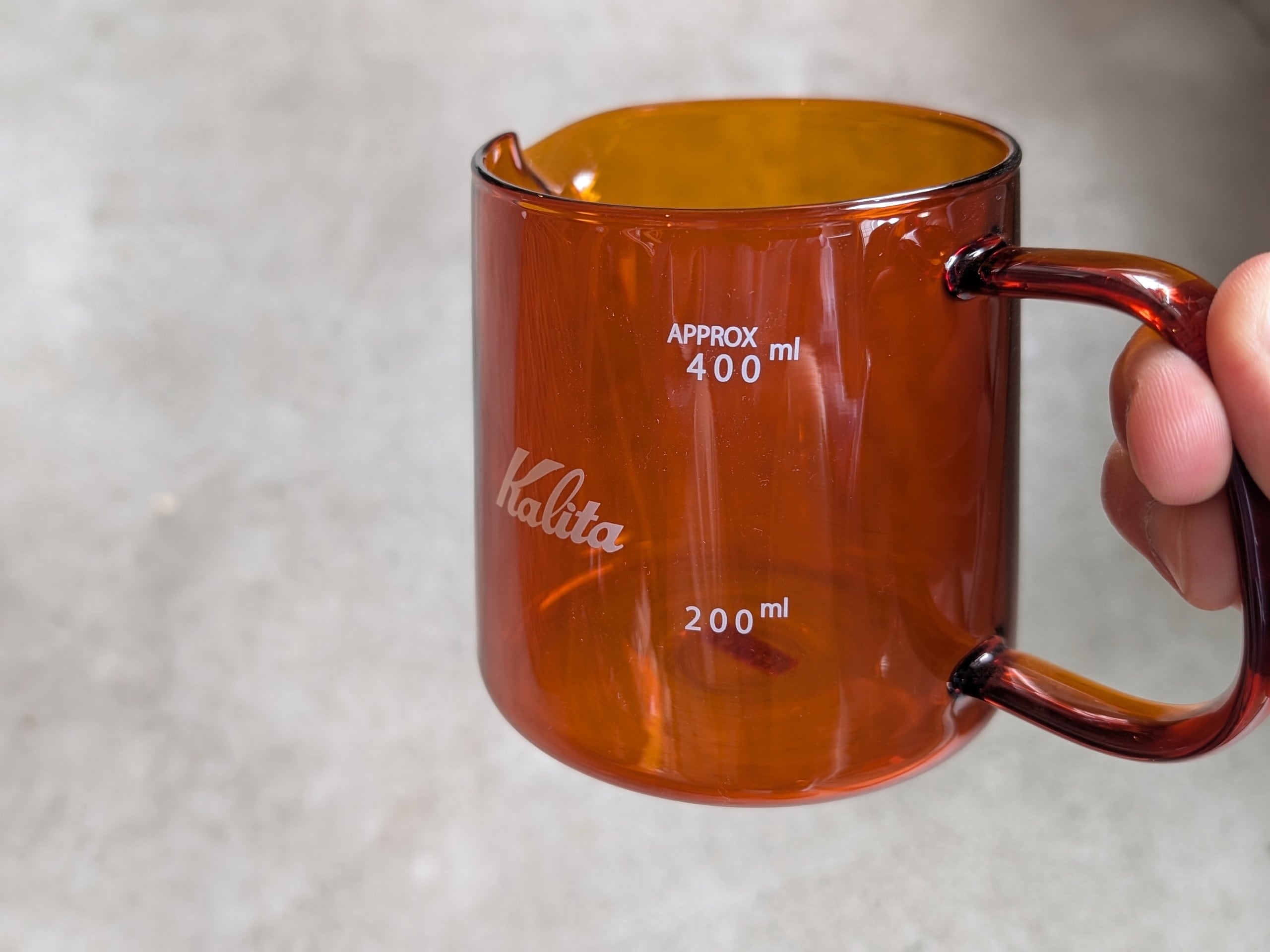 200㎖/400㎖の目盛りがついているので、1〜2杯のコーヒーを淹れるときに最適なサイズてす。