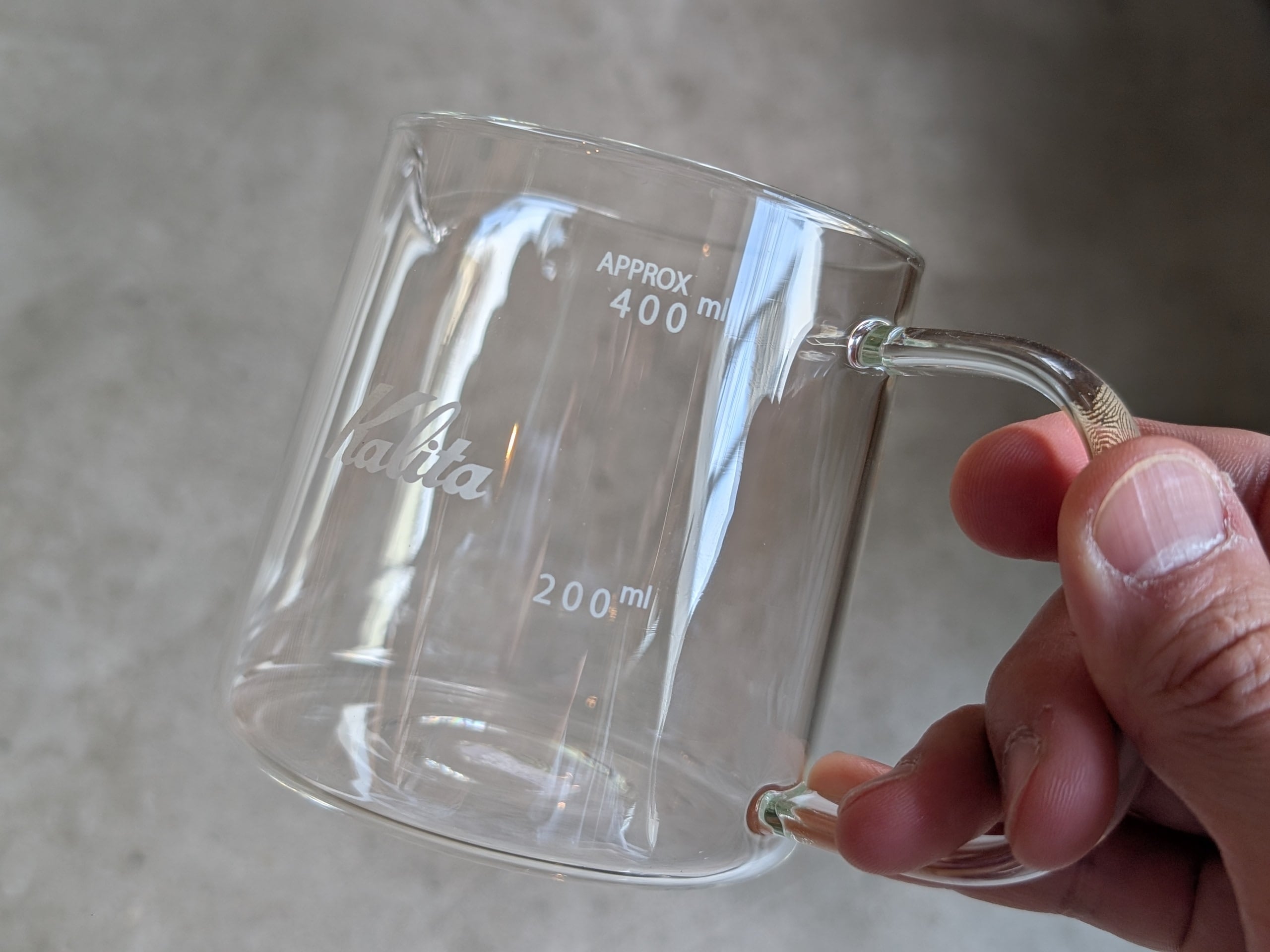 200㎖/400㎖の目盛りがついているので、1〜2杯のコーヒーを淹れるときに最適なサイズてす。