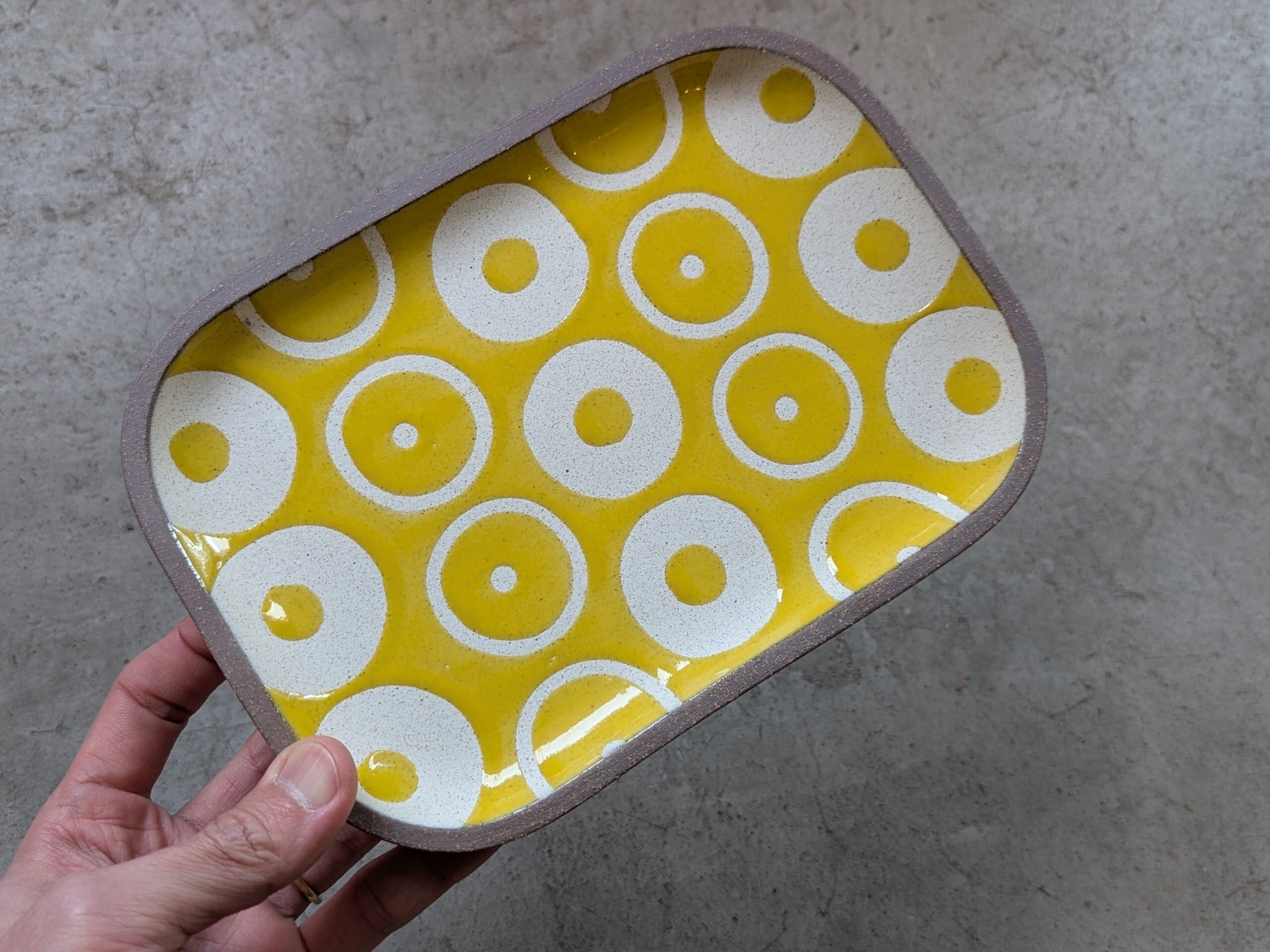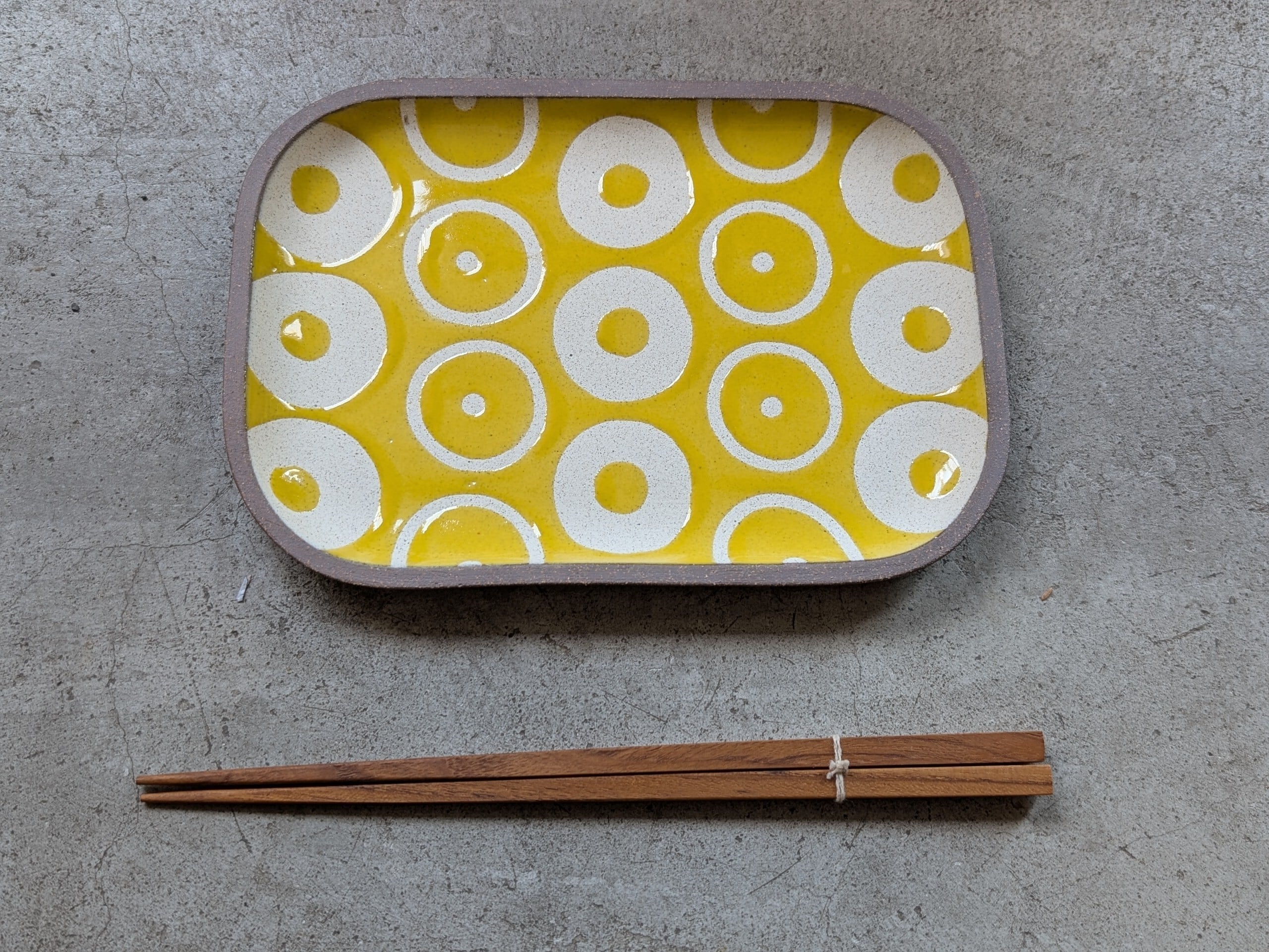 やちむん 角皿中 / ヘゴ(黄) | 一翠窯