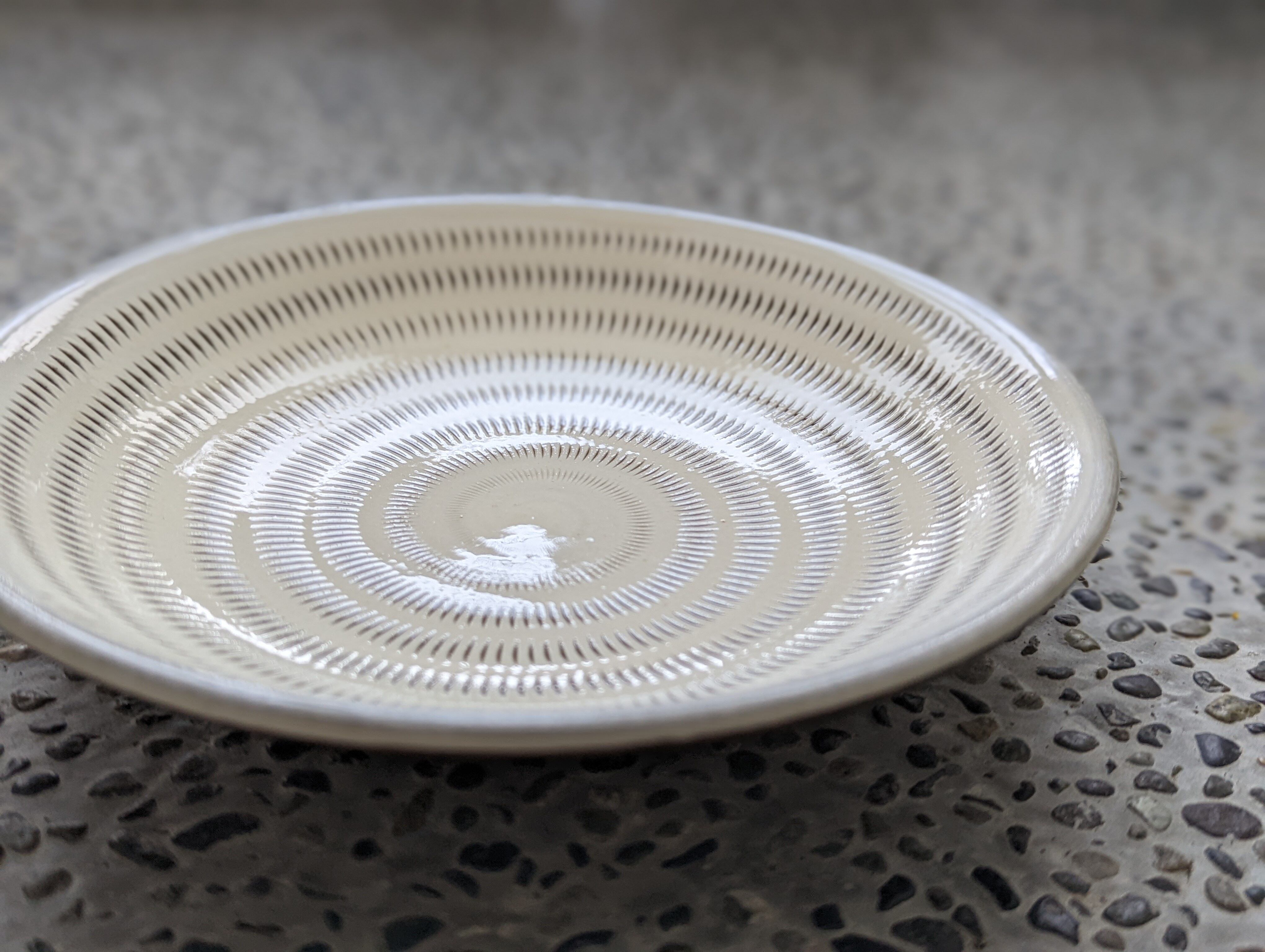多様な伝統技法によって表現される独特の幾何学的な文様「飛カンナ」や「刷毛目」が特徴的な素敵な器です。日常生活の中で使いやすい柄が多いので、どんなお料理にも合わせやすいです。
