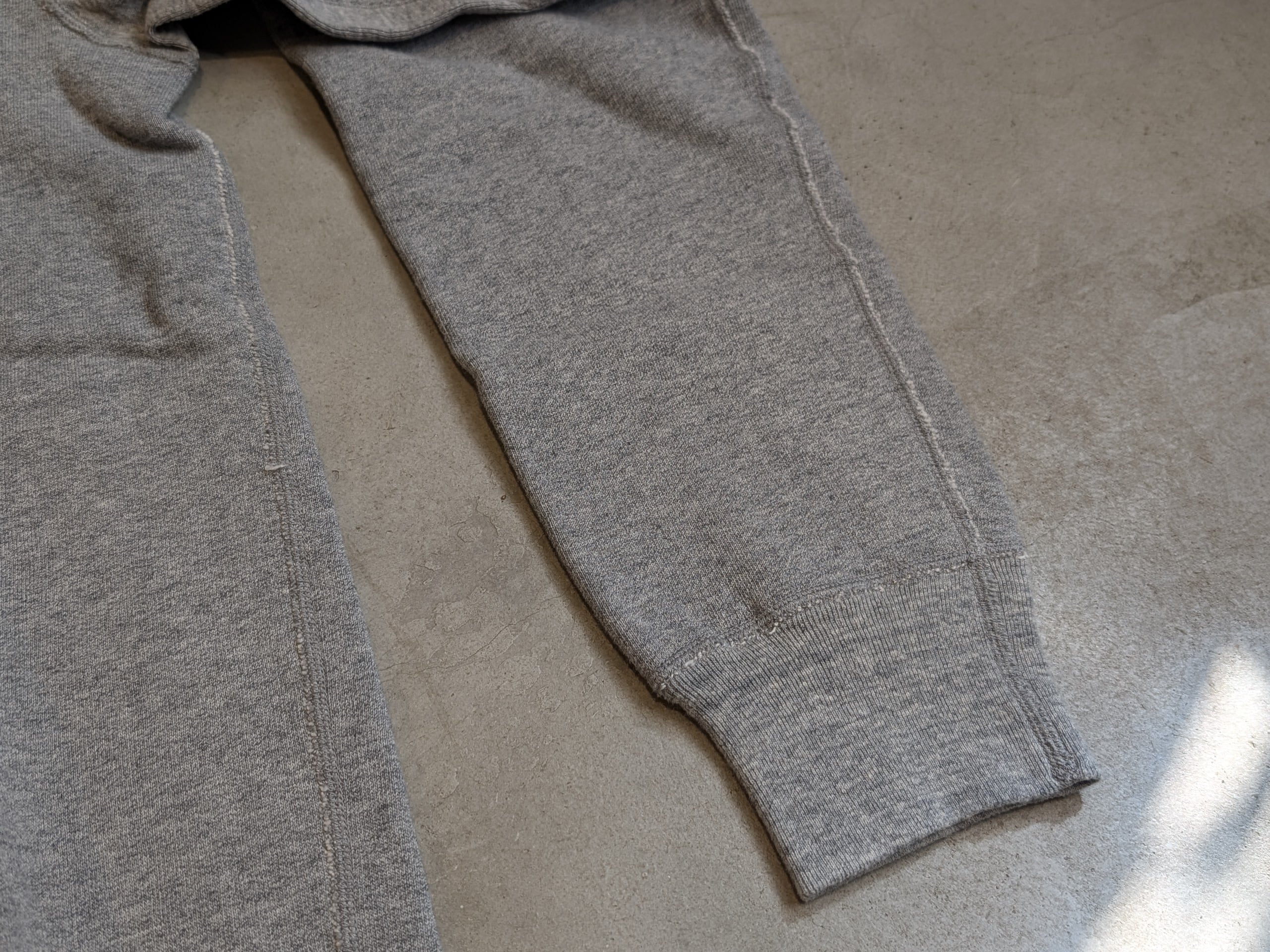 動きやすさ、見た目のスマートさにこだわり、スウェット特有の野暮ったさを解消。染色による縮率を計算し、後染め加工後にベストな形に仕上がるように仕立てています。