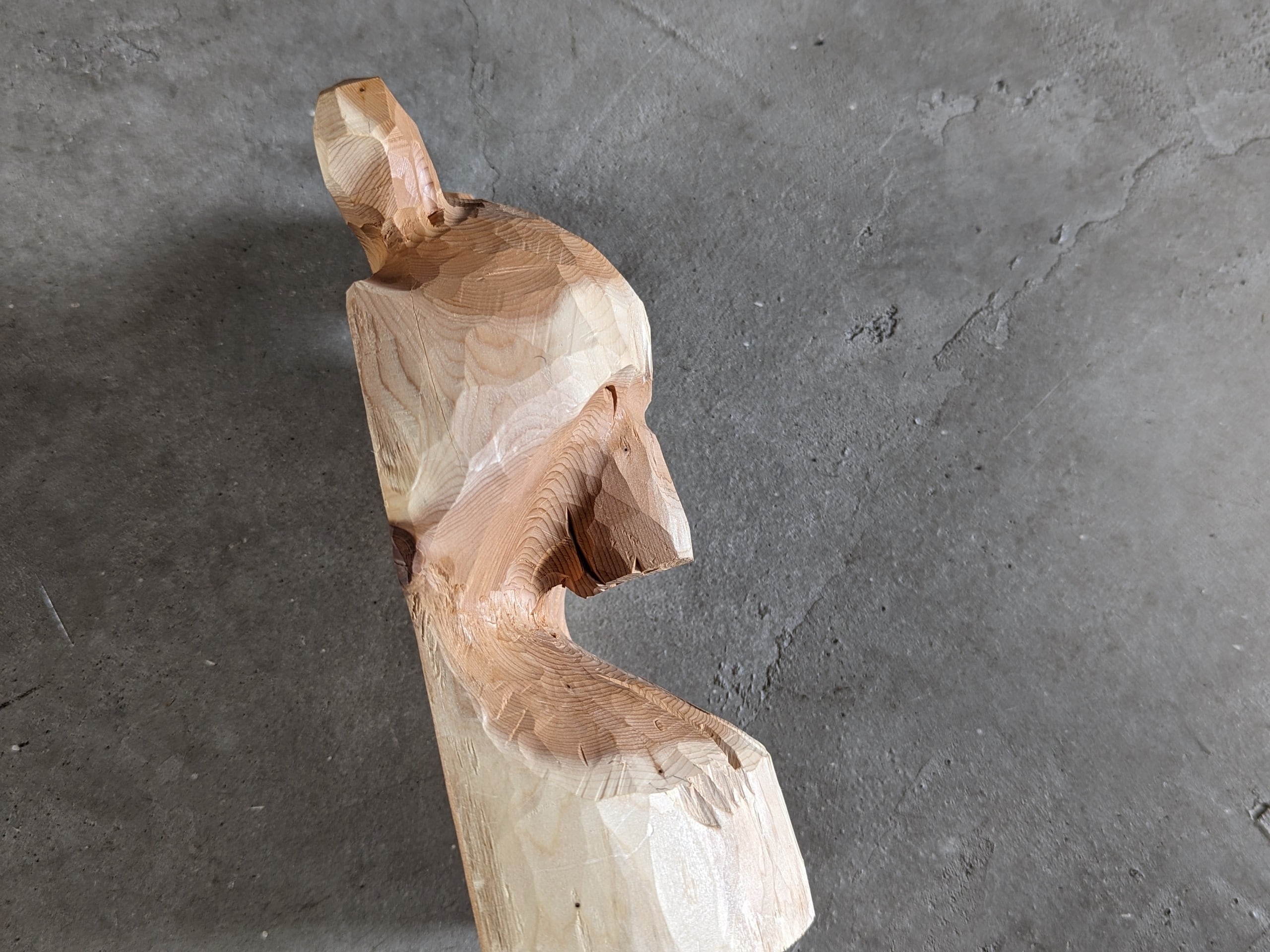 彫刻的なシルエットが特徴的な佐藤憲治さんの木彫りの熊です。