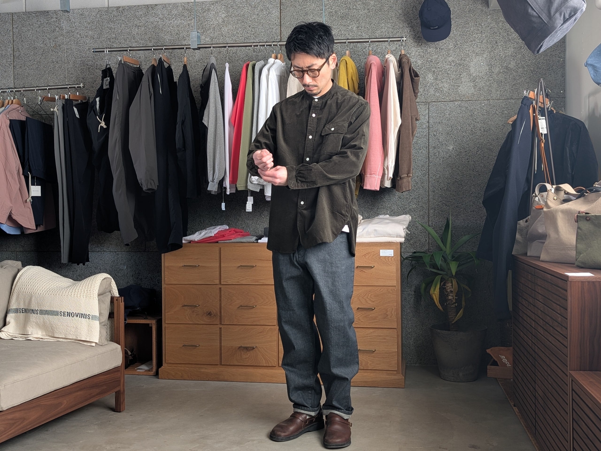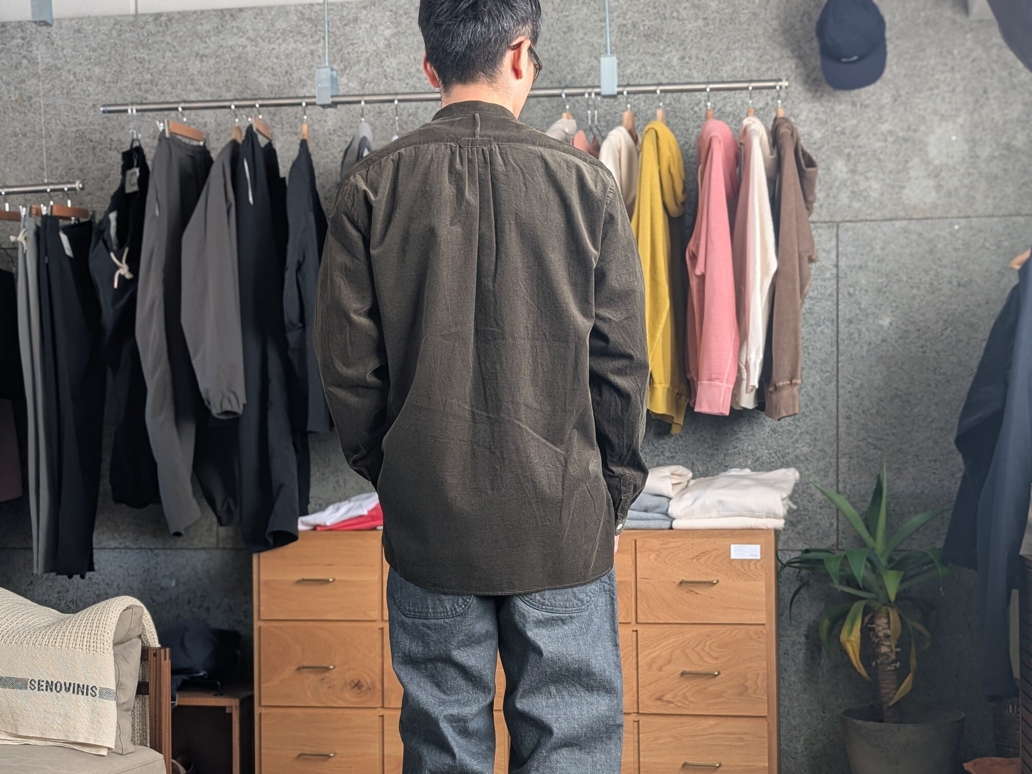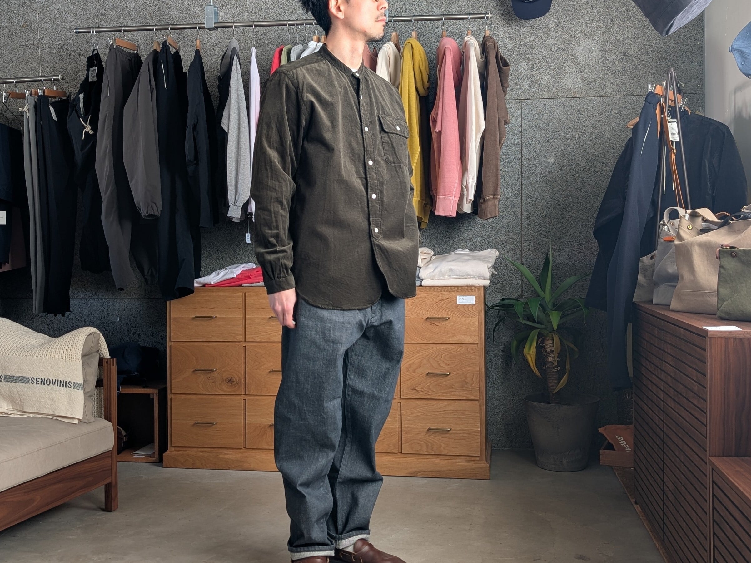 バンドカラーコーデュロイシャツ